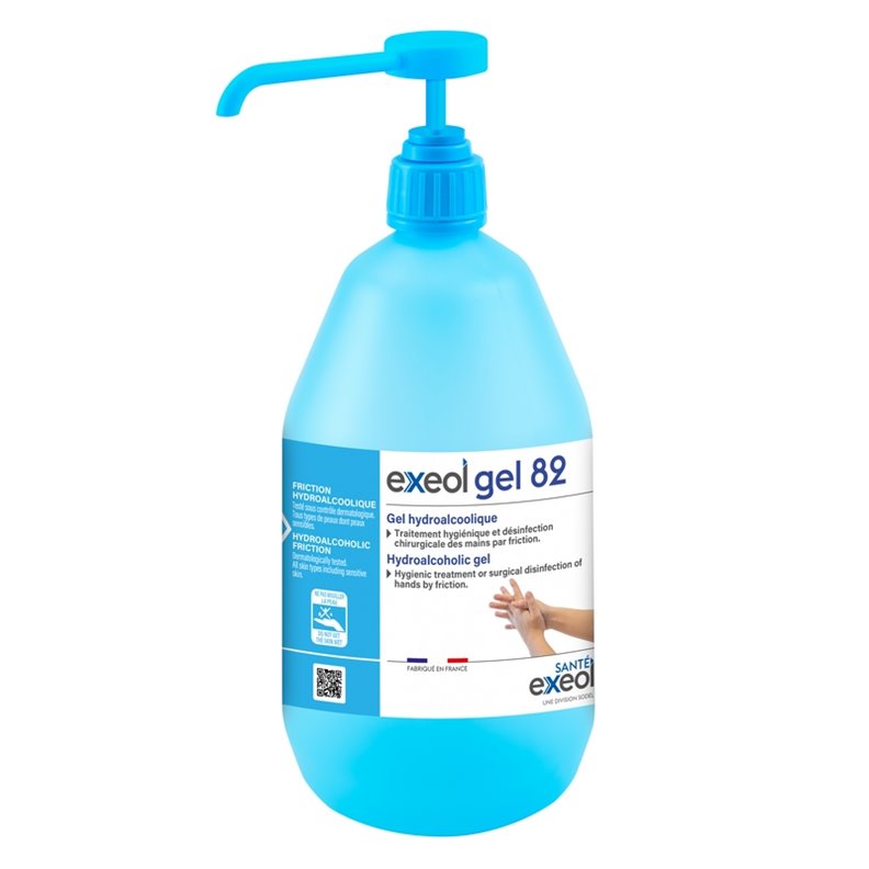 Gel hydroalcoolique Exeol Gel 82 Flacon 1 L + pompe vissée